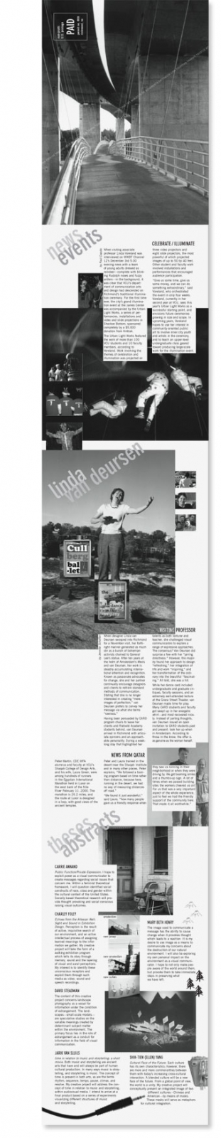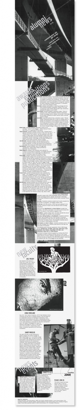 Produced on a small budget, this one-color newsletter is formatted as an accordion fold mailer. As the reader unfolds 34 inches of news, a bridge is revealed to signify connection.